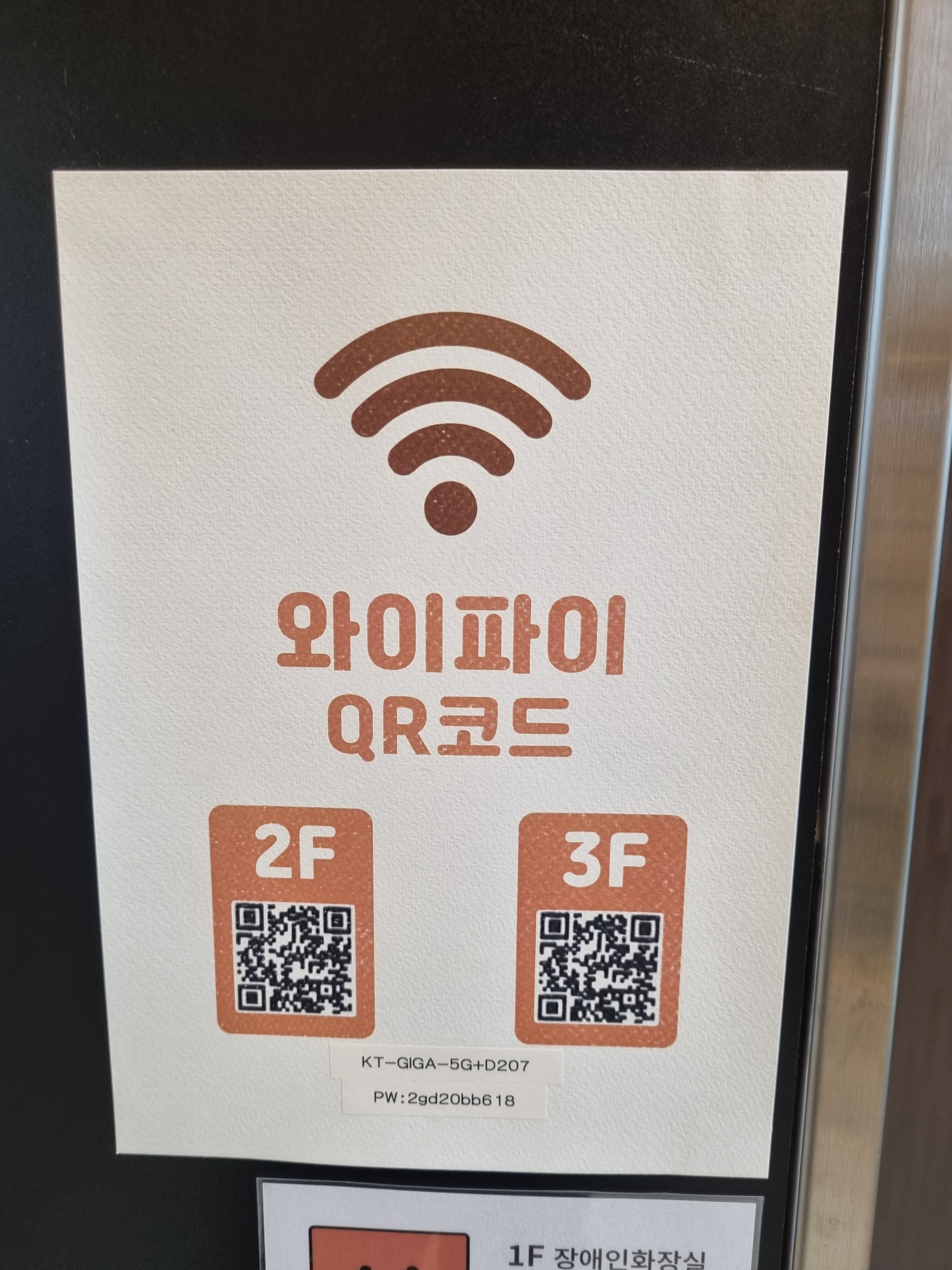 와이파이는 각 층 엘리베이터 옆에 이렇게 안내되어 있습니다
