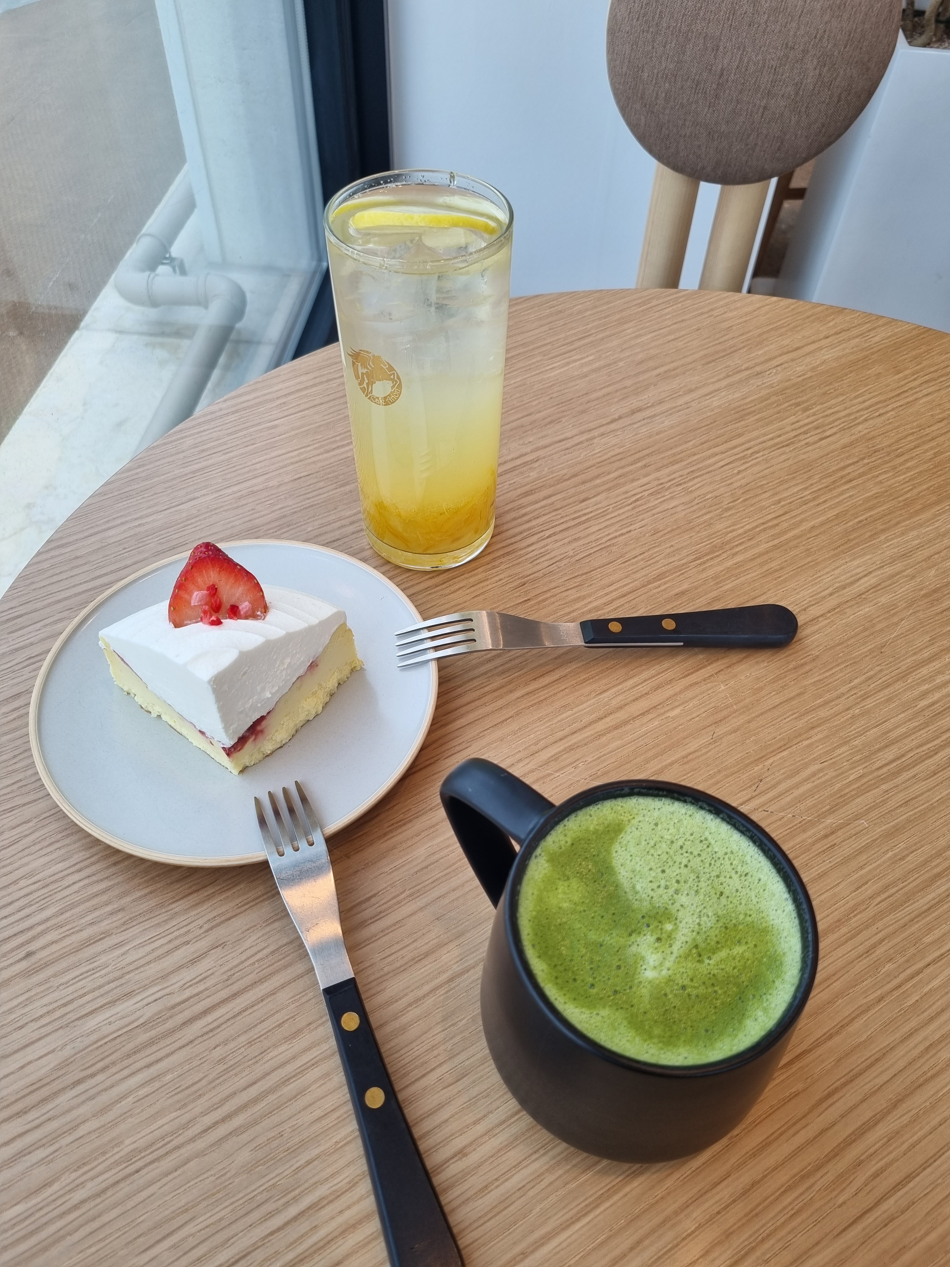 와이프와 치즈케이크와 유자차 & 녹차라떼를 한잔 마시며 시간을 보냈습니다