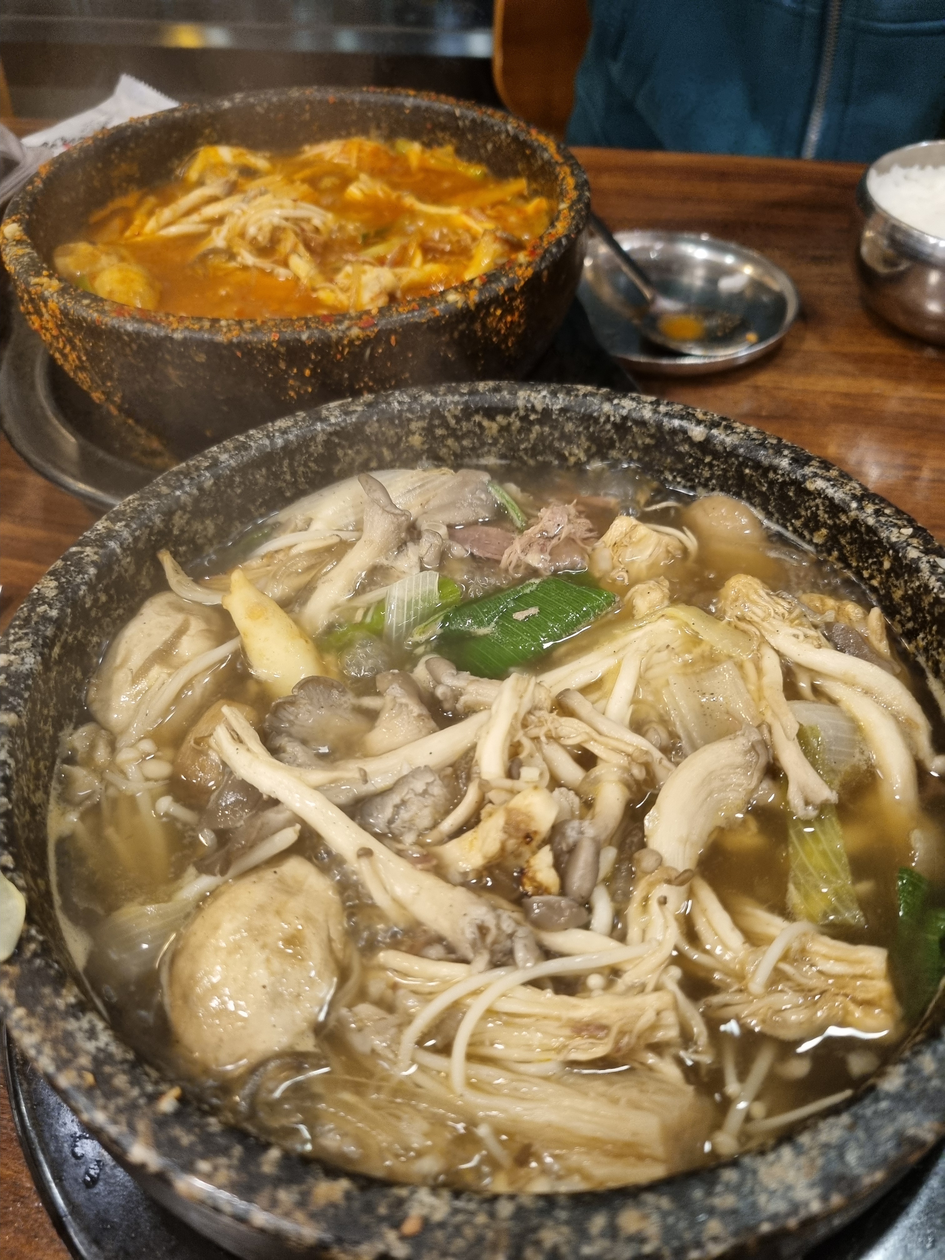 버섯 육개장과 버섯 맑은탕을 하나씩 주문합니다