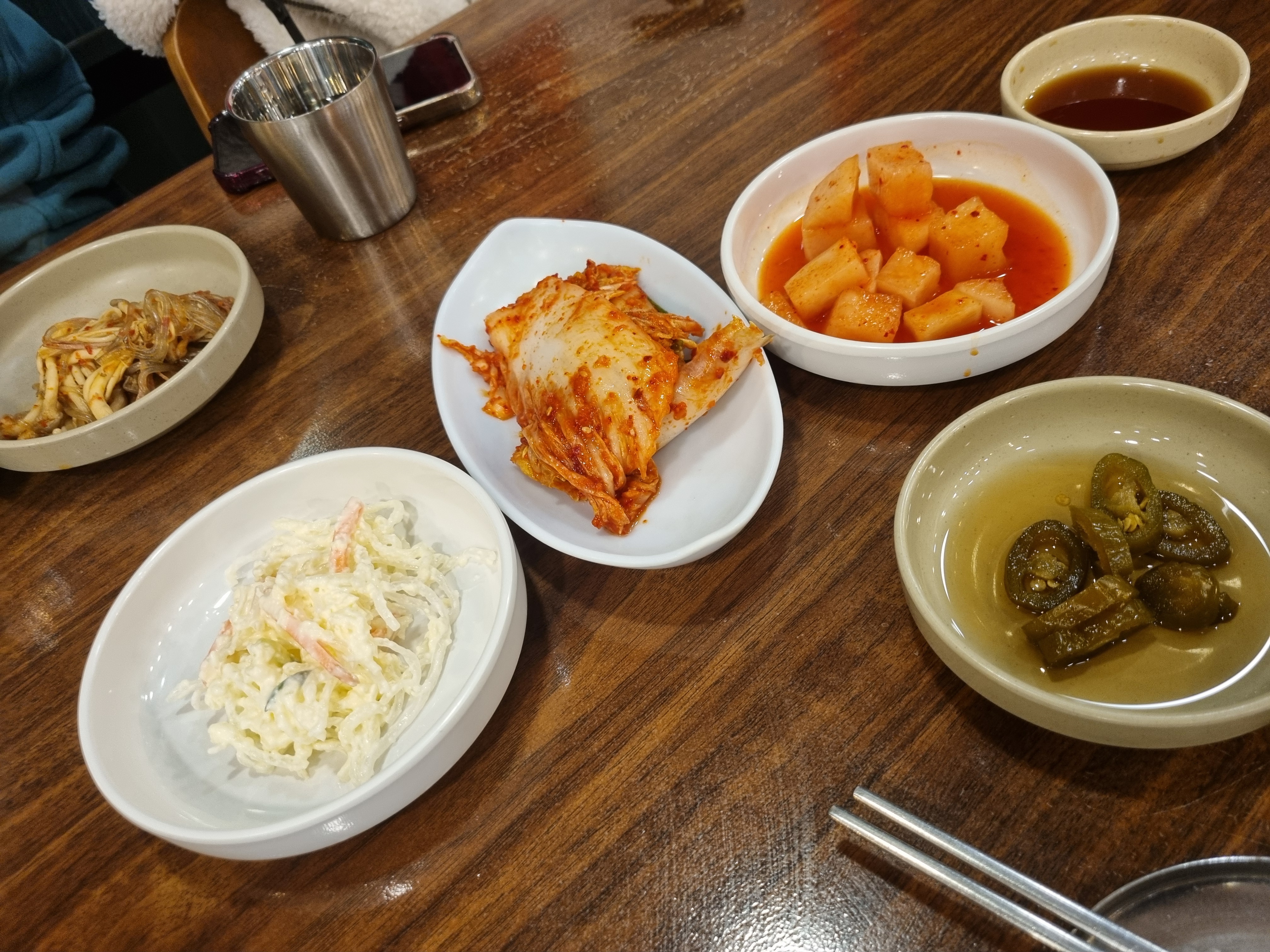 개인적으로는 저 하얀 천사채 샐러드가 꼬독꼬독하고 맛있더라고요