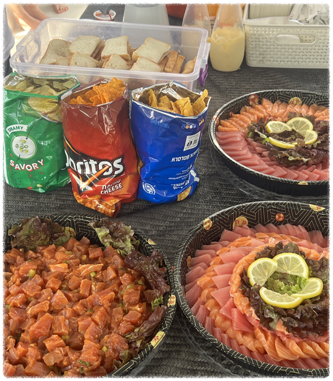 그리고 가지고 오신 짐들은 바로 모두 저 요트 앞쪽 선반에 올려두셔야 해요~