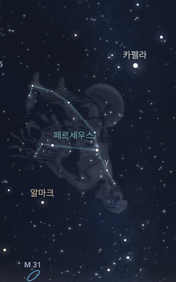 [시리우스, 페르세우스, 안드로메다, 북극성, 카시오페아, 오리온, 북두칠성 등]