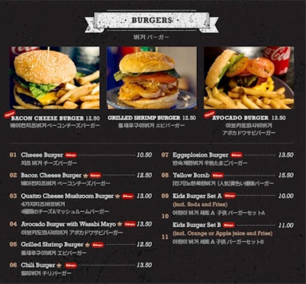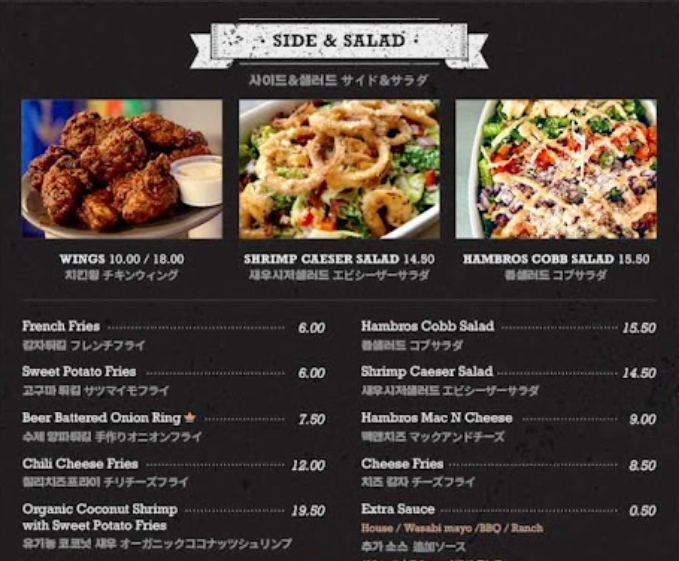 아래와 같이 한국어가 포함된 메뉴판을 사용 중입니다