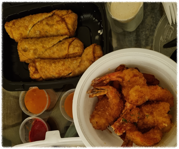 '코코넛 쉬림프'와 '쉬림프롤'을 테이크아웃 해왔습니다