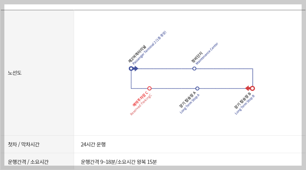 [제2 터미널 예약주차장 셔틀버스 노선도 및 운행 시간]