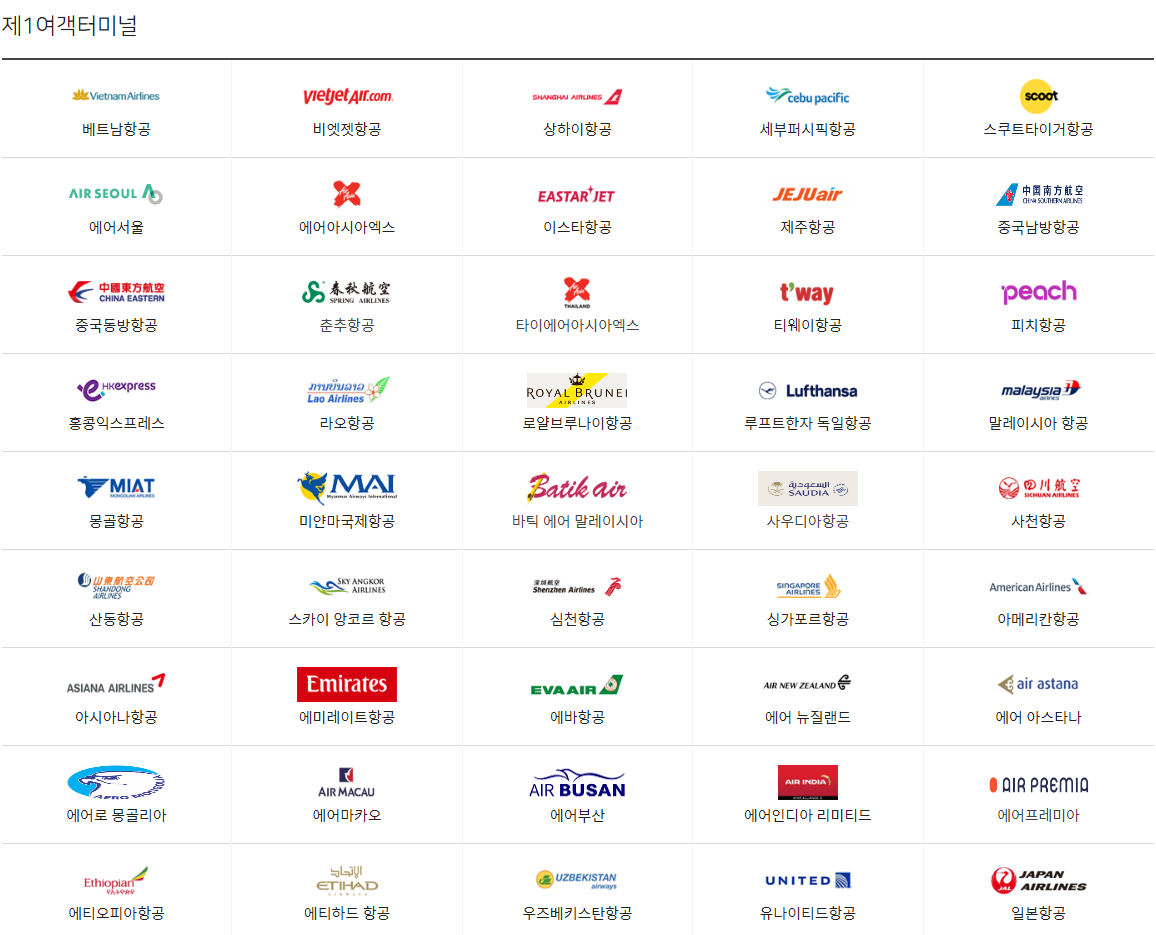*참고로 1 터미널, 2 터미널의 차이는 아래와 같이 탑승 항공사 업체들입니다