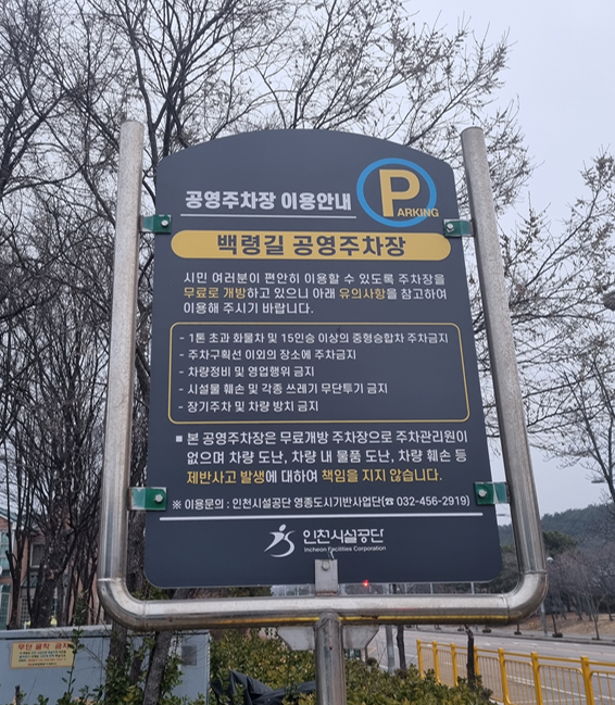 3, 백령길 공영 주차장 (아직까지는 무료)