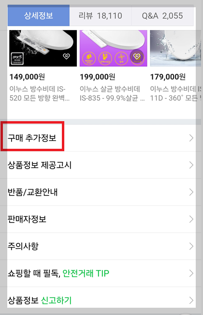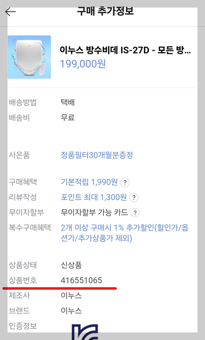 상품 번호의 경우, 마찬가지로 상품 정보 하단에 '구매 추가정보'를 누르면