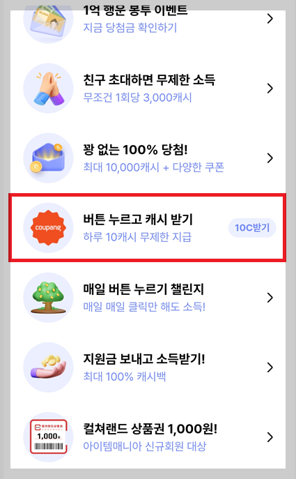 어느 앱테크든 하루 10 캐시를 뿌리고 계신 쿠팡님