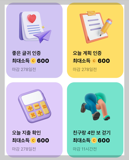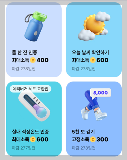 월요일~일요일까지 한 주간 한 번에 최대 3가지 미션을 할 수 있습니다