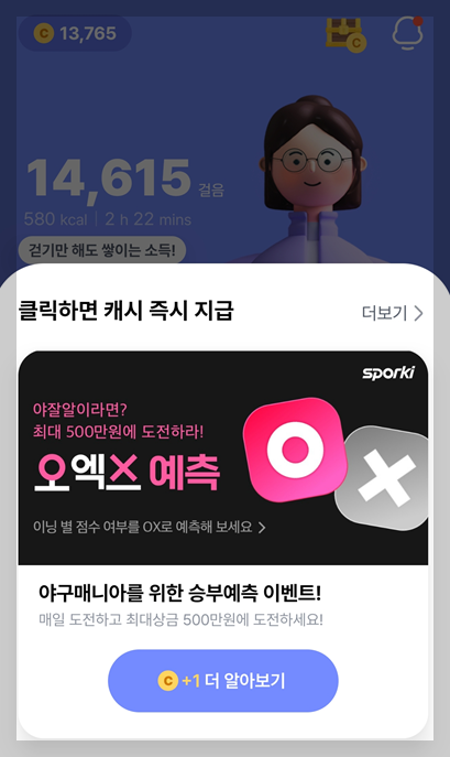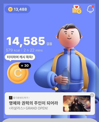 기본적으로 하루 만보를 걸으면 최대 30 캐시를 받습니다