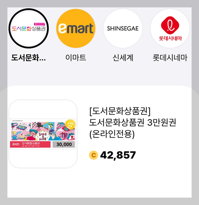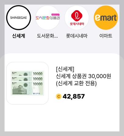 6개월 정도 꾸준히 모으면 다음과 같이 3만 원 상품권 정도는 구매가능합니다