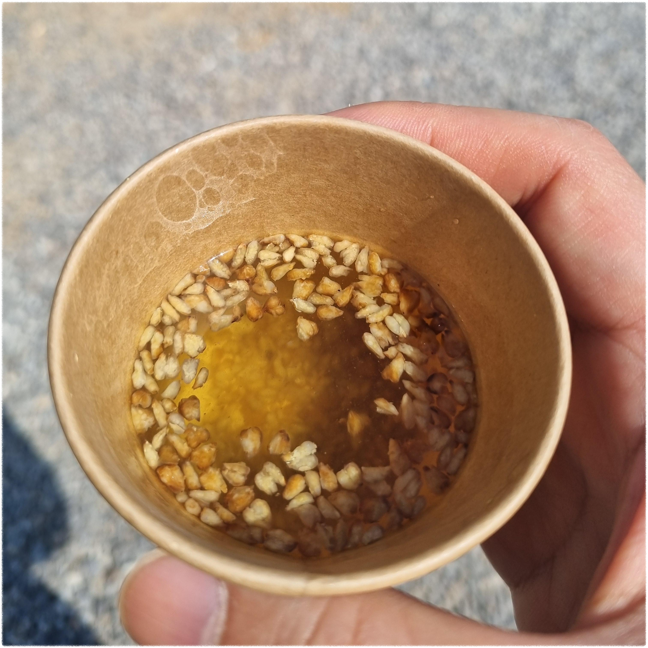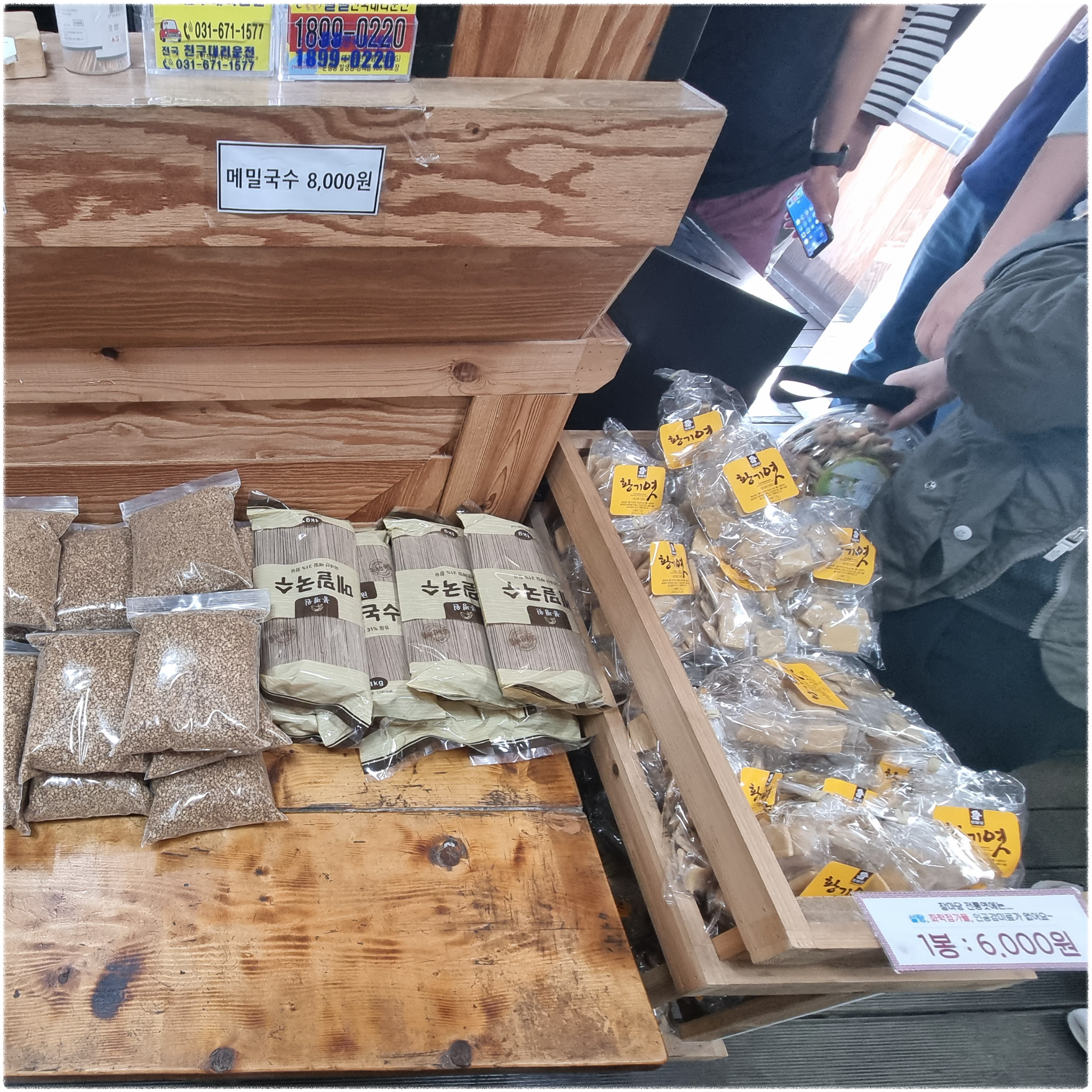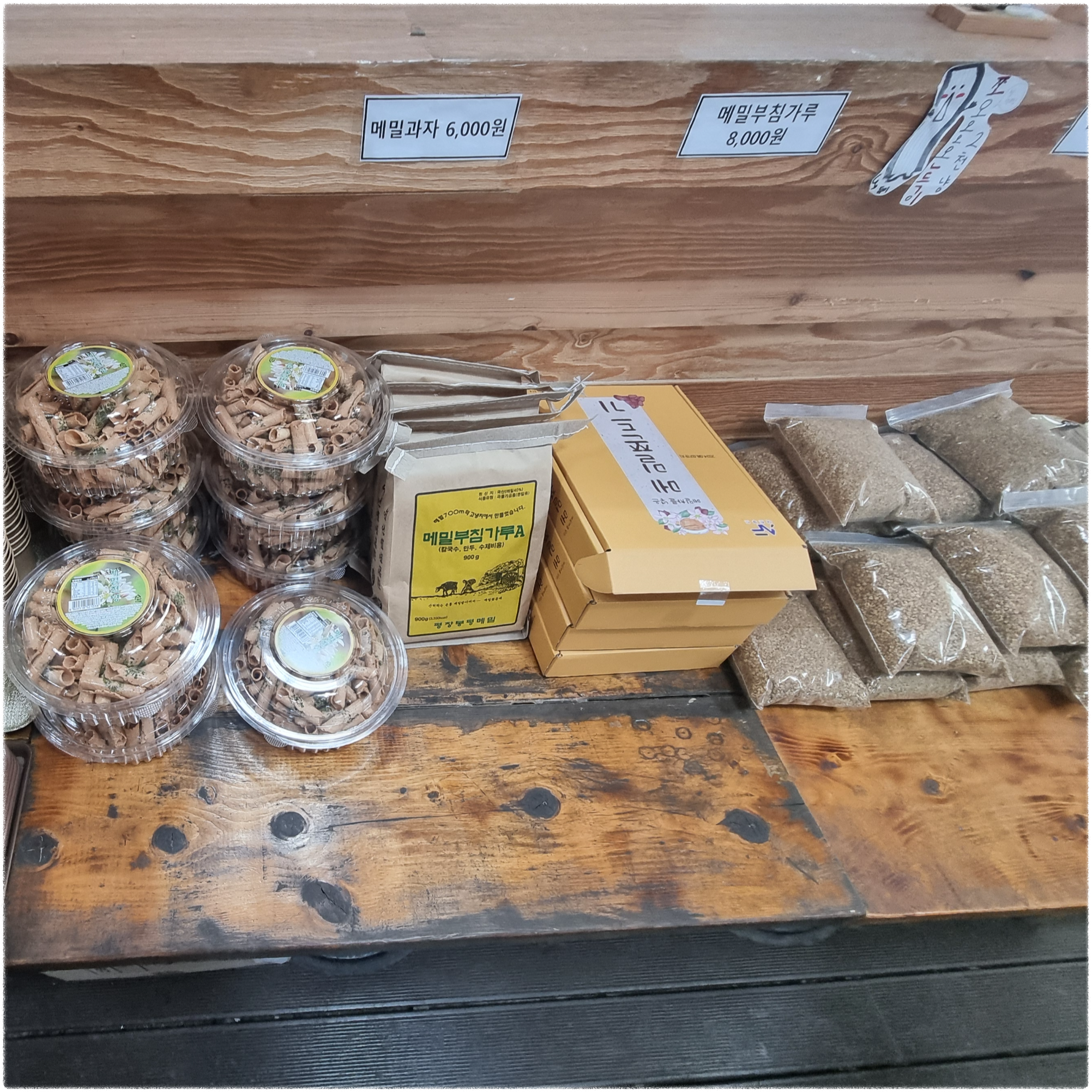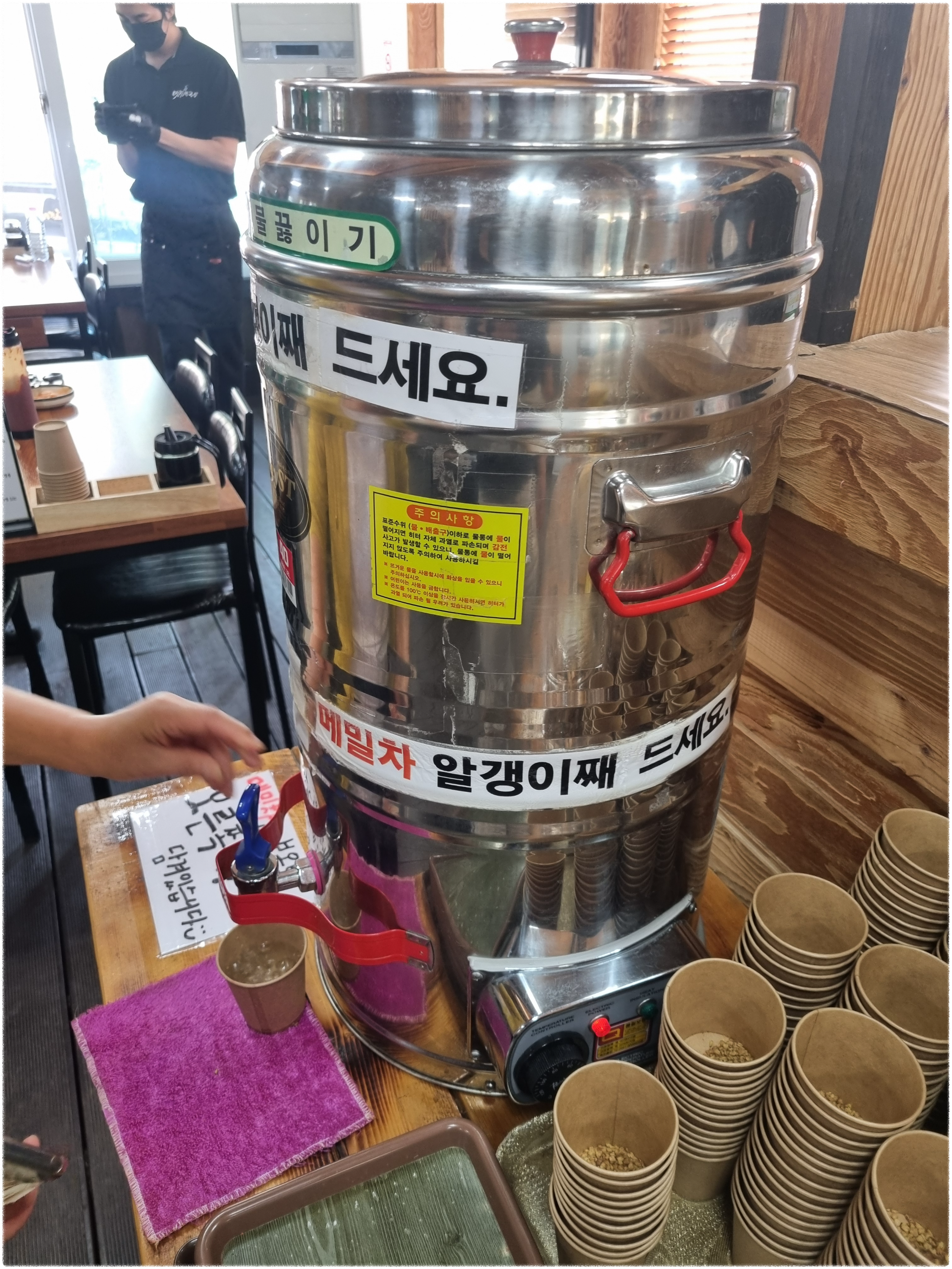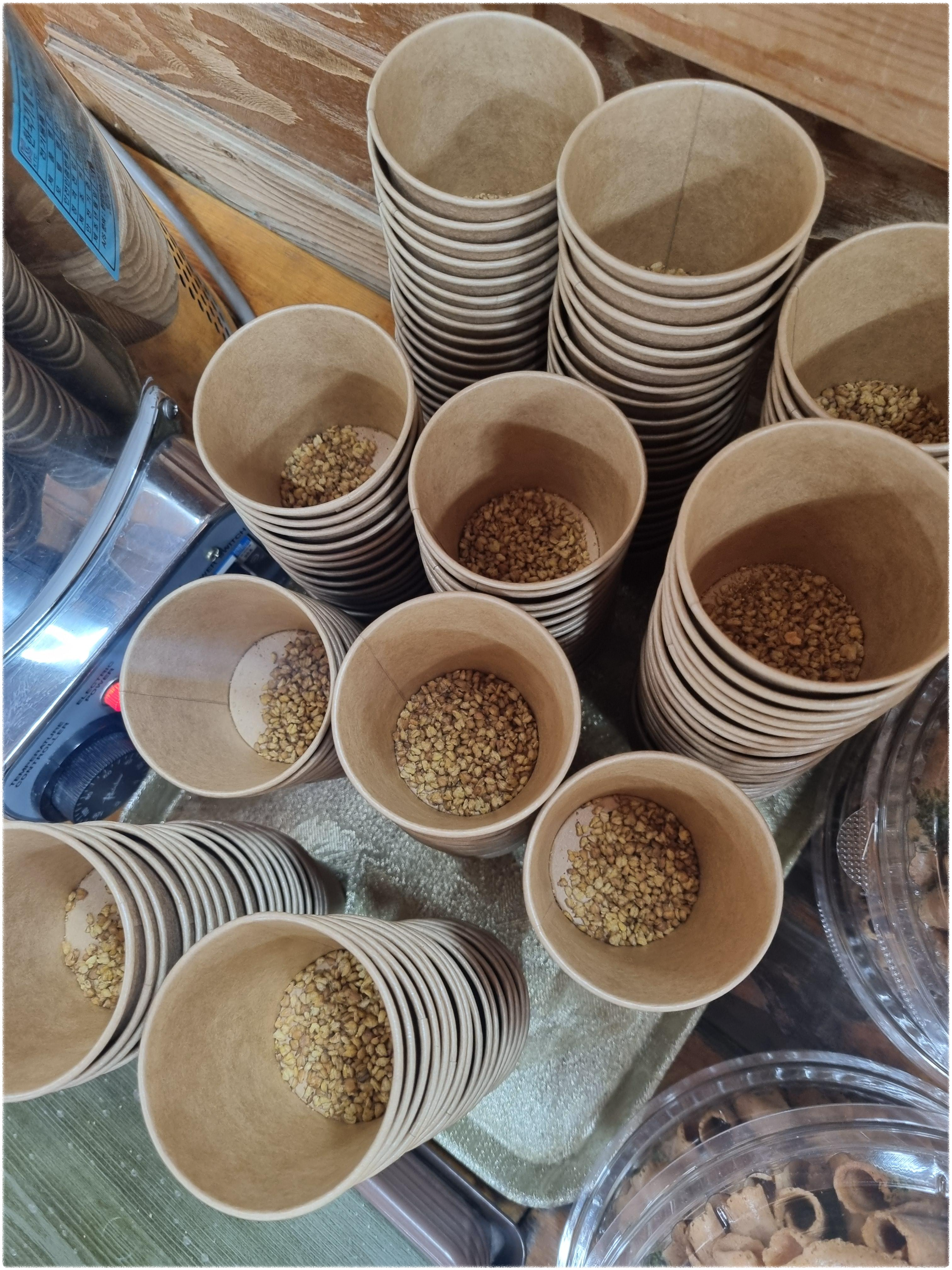 마지막으로 카운터에 가면 이렇게 종이컵에 메밀 알갱이가 담겨 있습니다