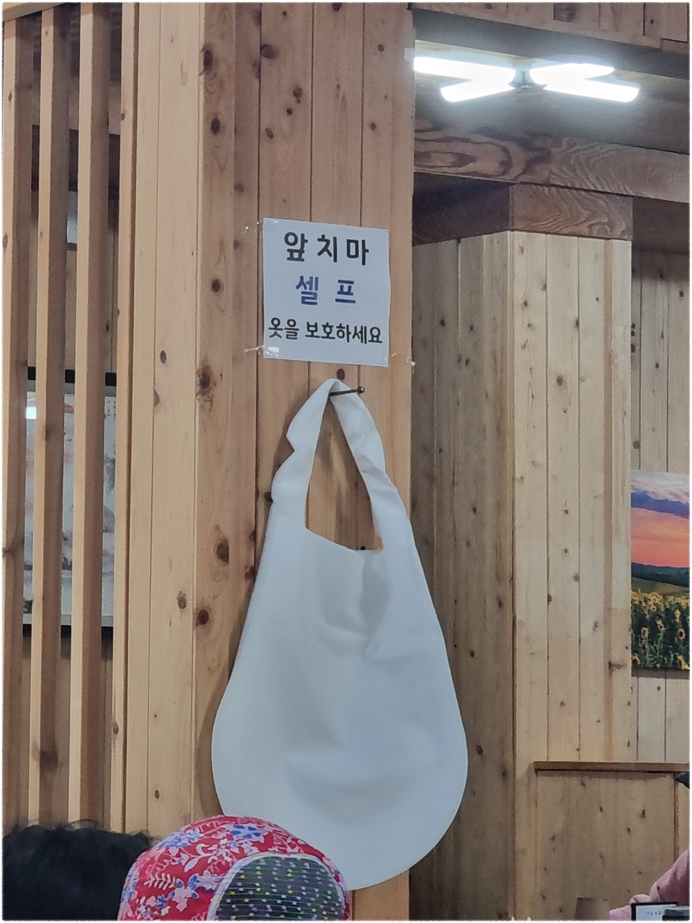 필요하시면 벽에 달린 1회용 앞치마를 가져다 쓰시면 됩니다