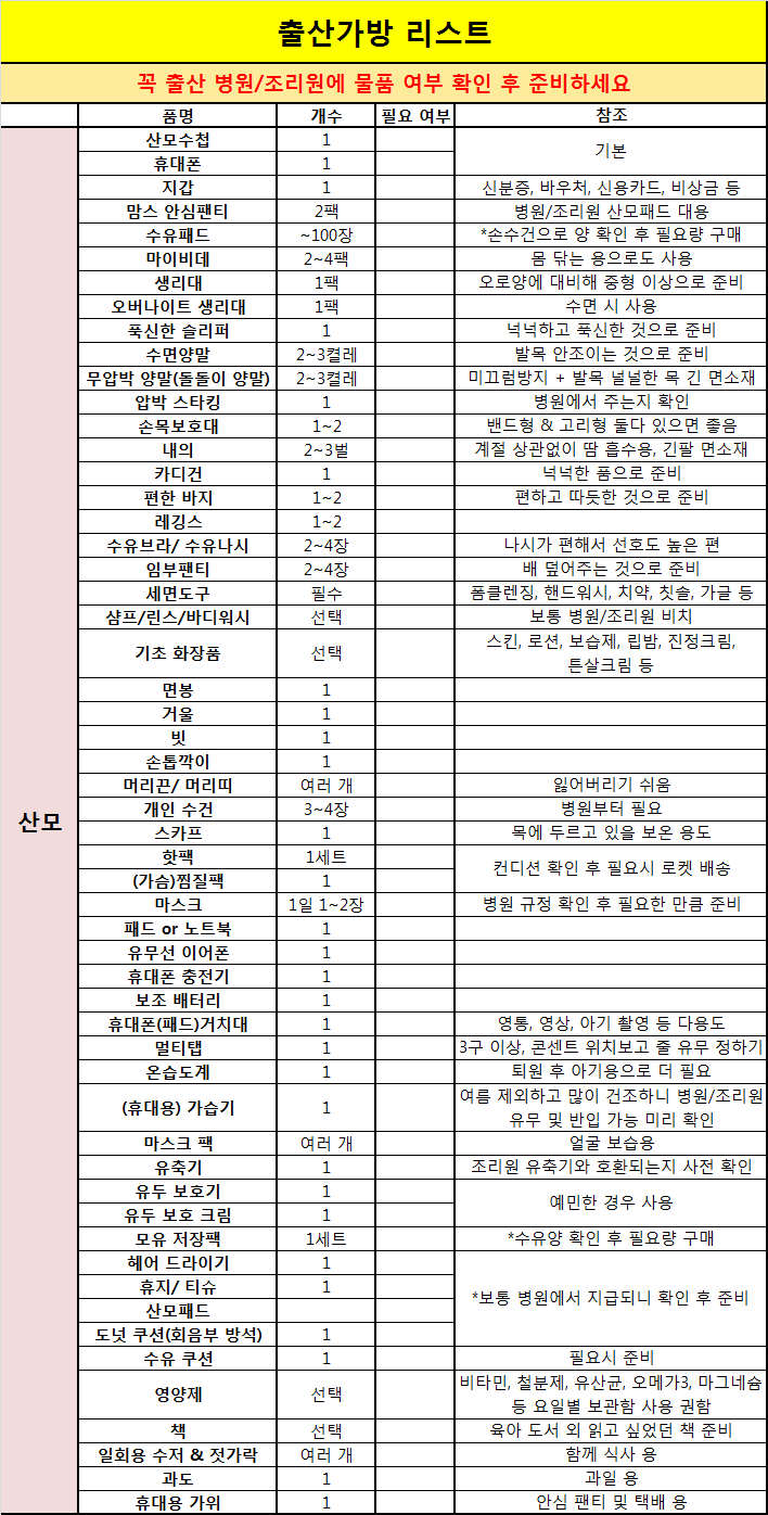 꼭 필요한 것만 정해서 효율적인 출산 가방 준비하시길 바랍니다~