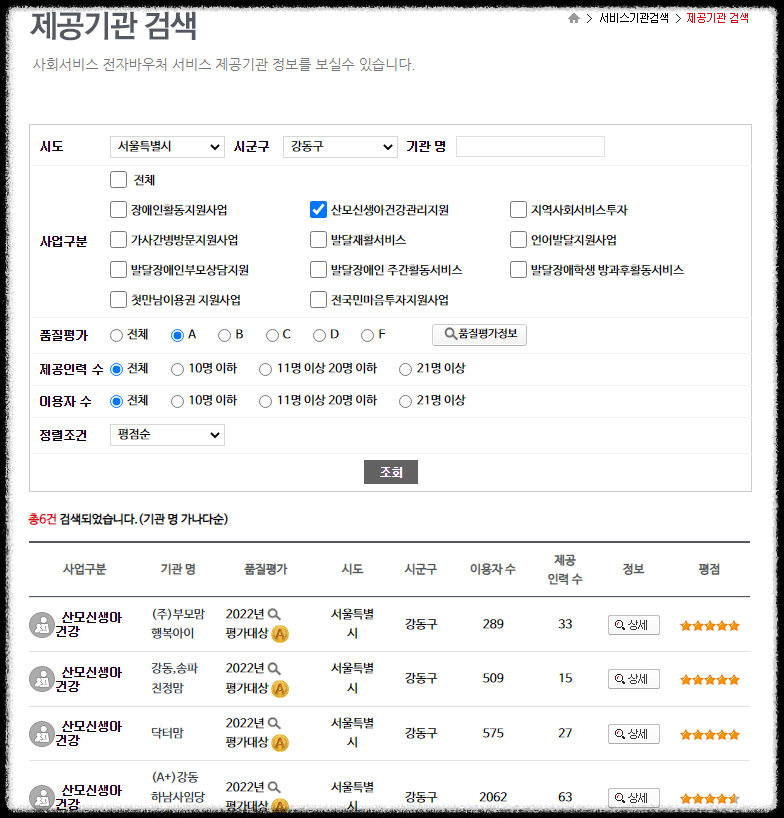 [사회 서비스 전자바우처 - 서비스 기관 검색]