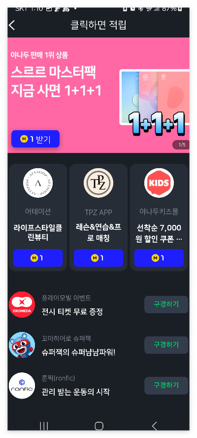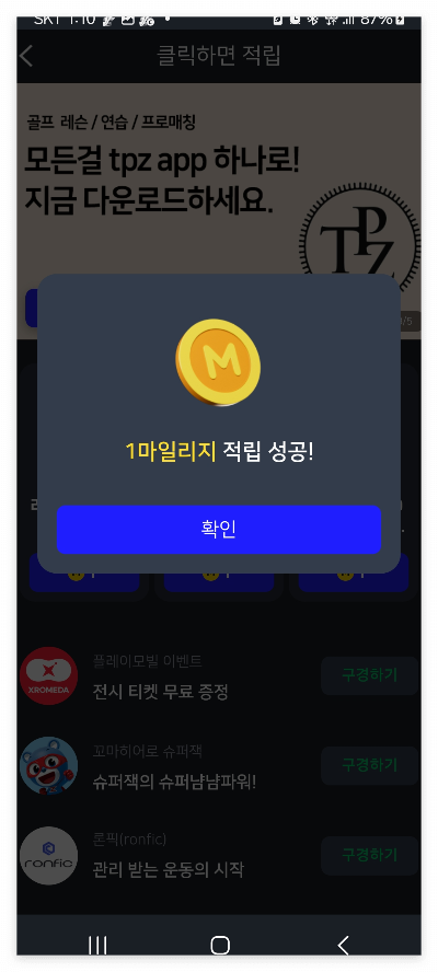 해당 페이지에 들어가서 바로 나와도 1 마일리지 적립