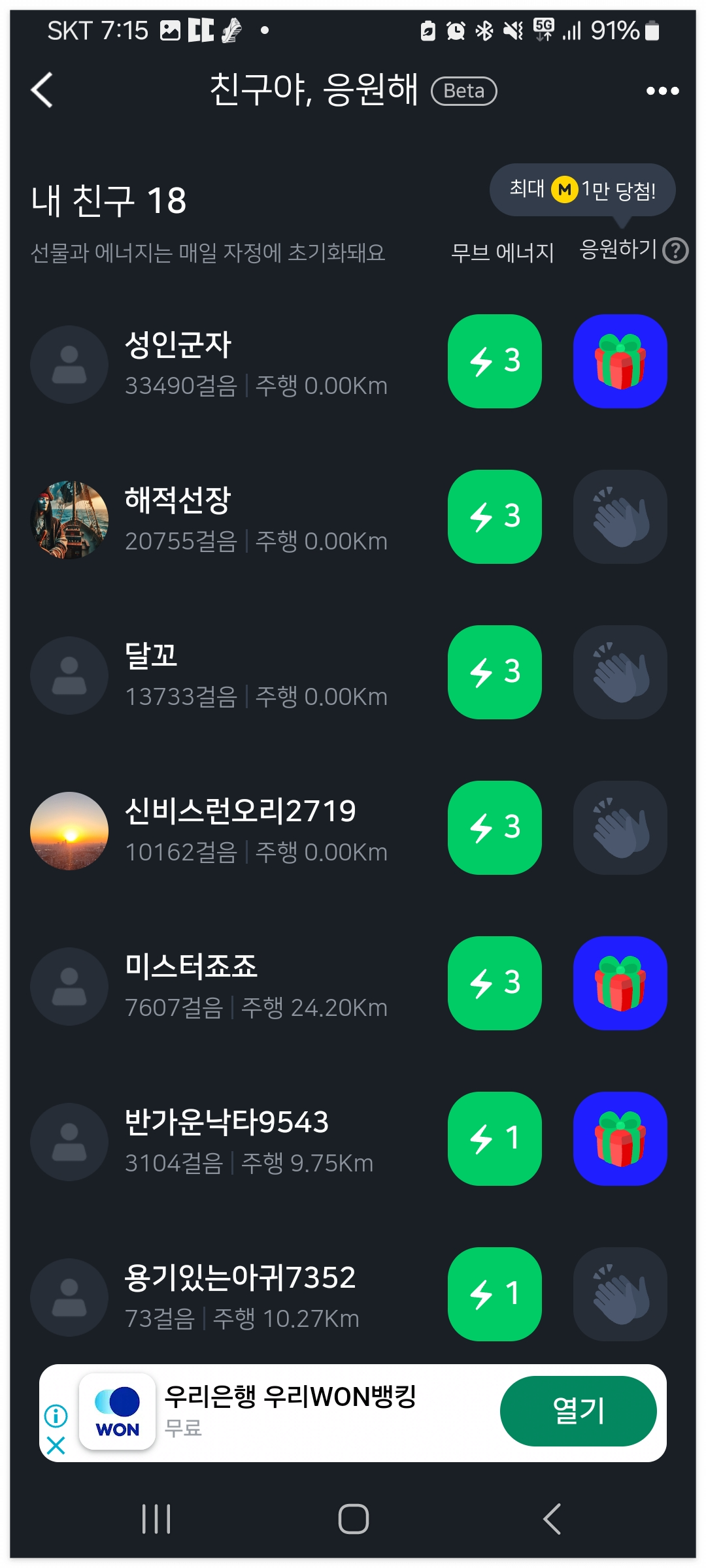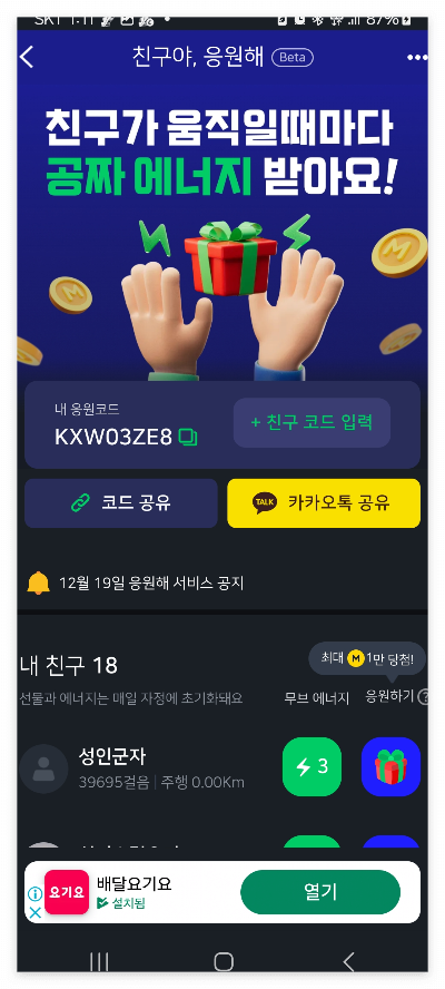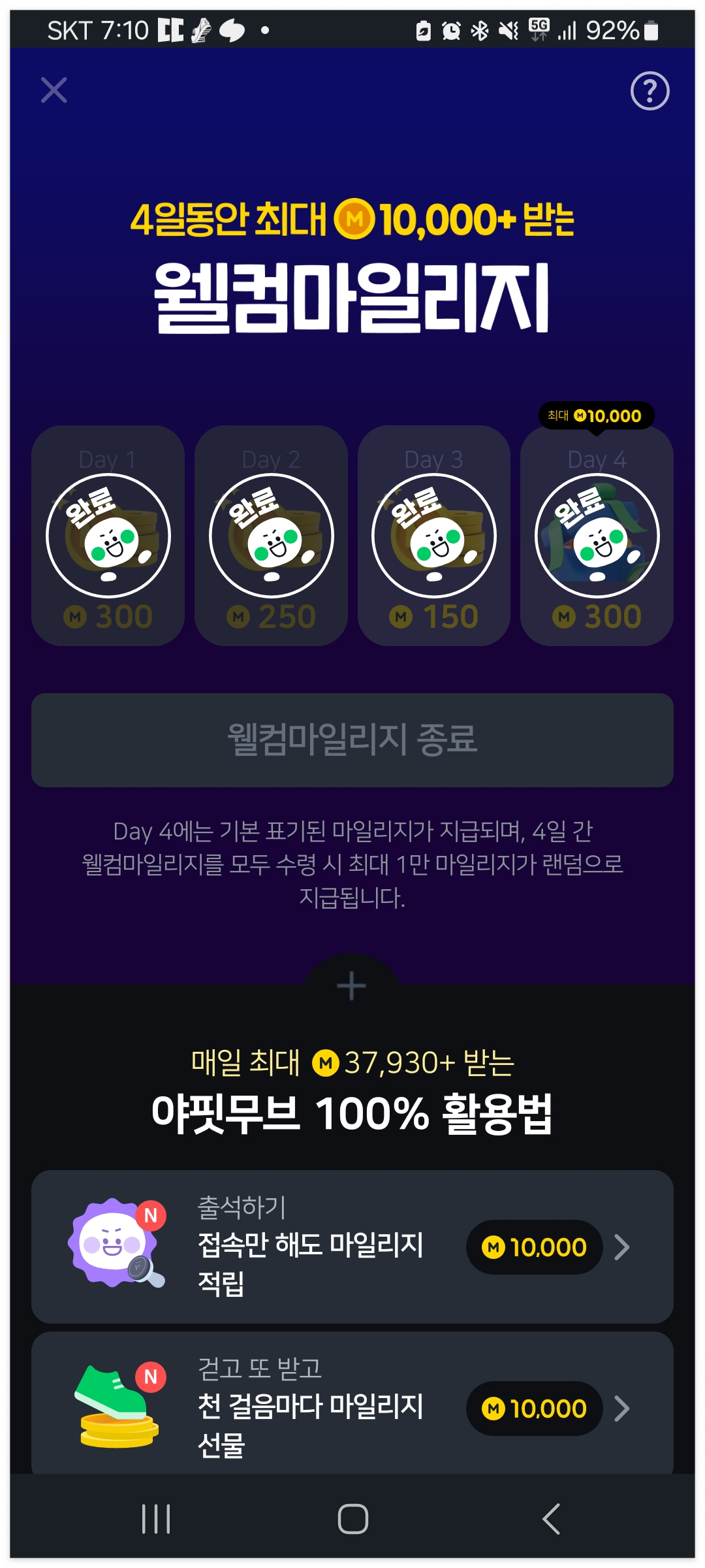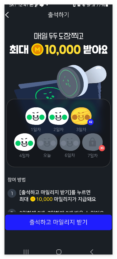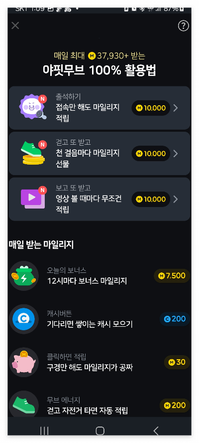 10, 매일 받는 응원 마일리지 (친구코드 추가 KXW03ZE8)
