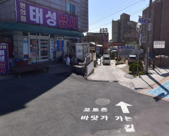 촬영 위치 - '태성낚시' 옆 내리막으로 바닷 방파제까지 쭈욱~ 내려가기