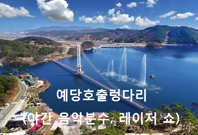 예당호 모노레일(오후타임 예약) - 예산시장(오픈런 아점) - 예당호 모노레일 - 예당호 출렁다리(음악분수) - 예당호 황금나무(해 질 녘 - 카페아레테 앞)
