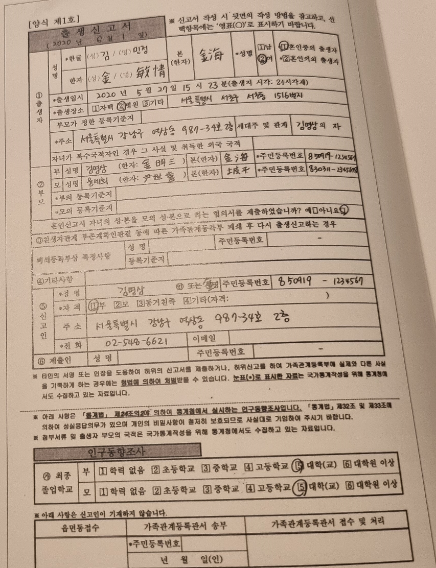 그렇게 한 달 가까이 고민 끝에 어렵사리 정한 이름을 가지고 출생신고를 하러 갔습니다