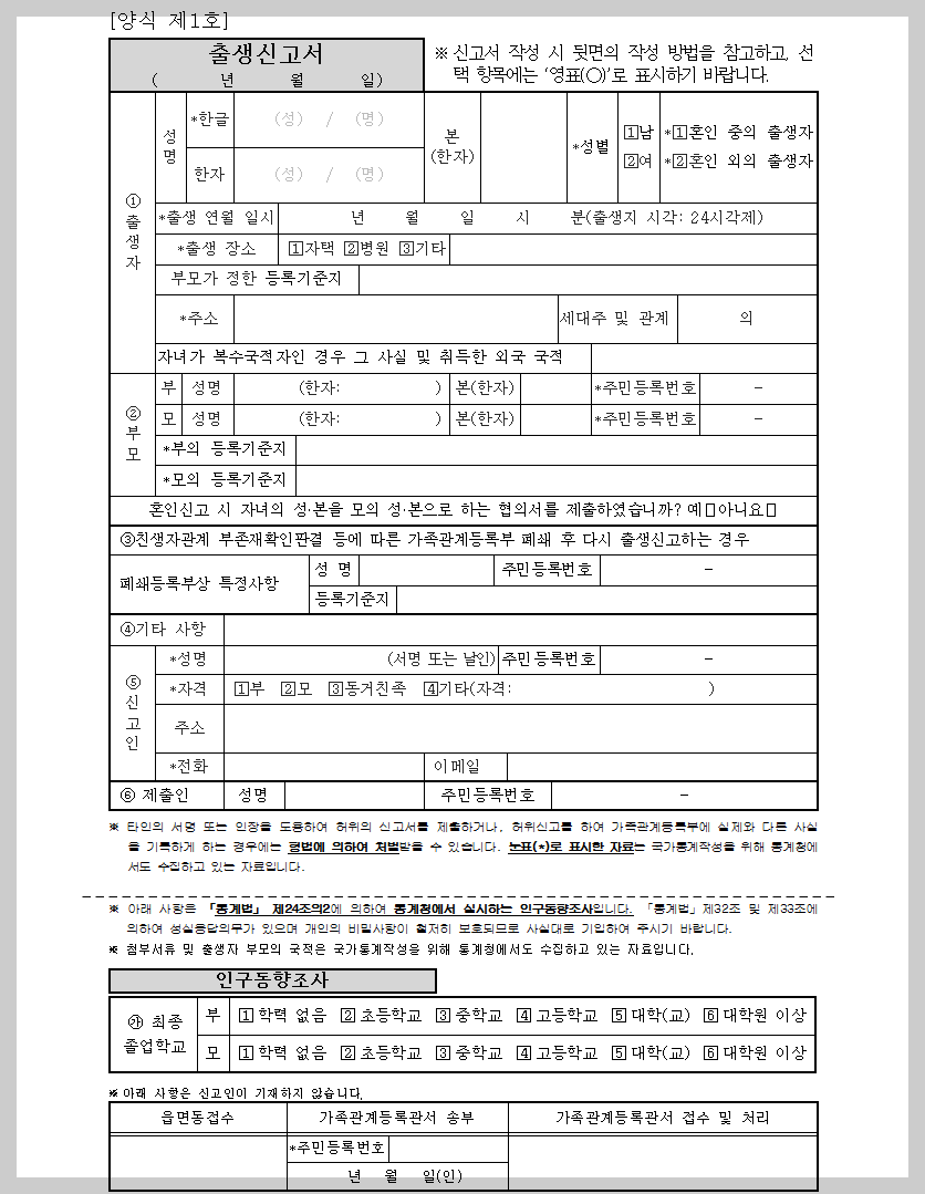 출생신고서를 제출한 뒤에는 바로 아래 양식을 작성해 달라고 안내받으실 겁니다