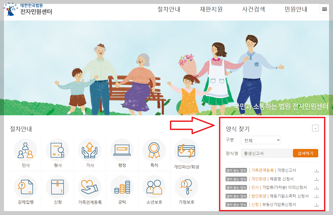 아래와 같이 양식 찾기를 통해서 출생신고서를 받아보세요~