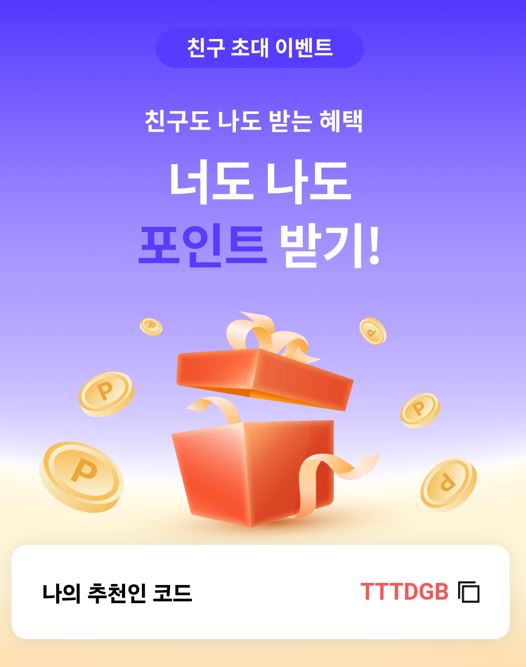다음 추천인 코드를 입력해 주시면 5천 포인트를 받고 시작할 수 있어요 ~