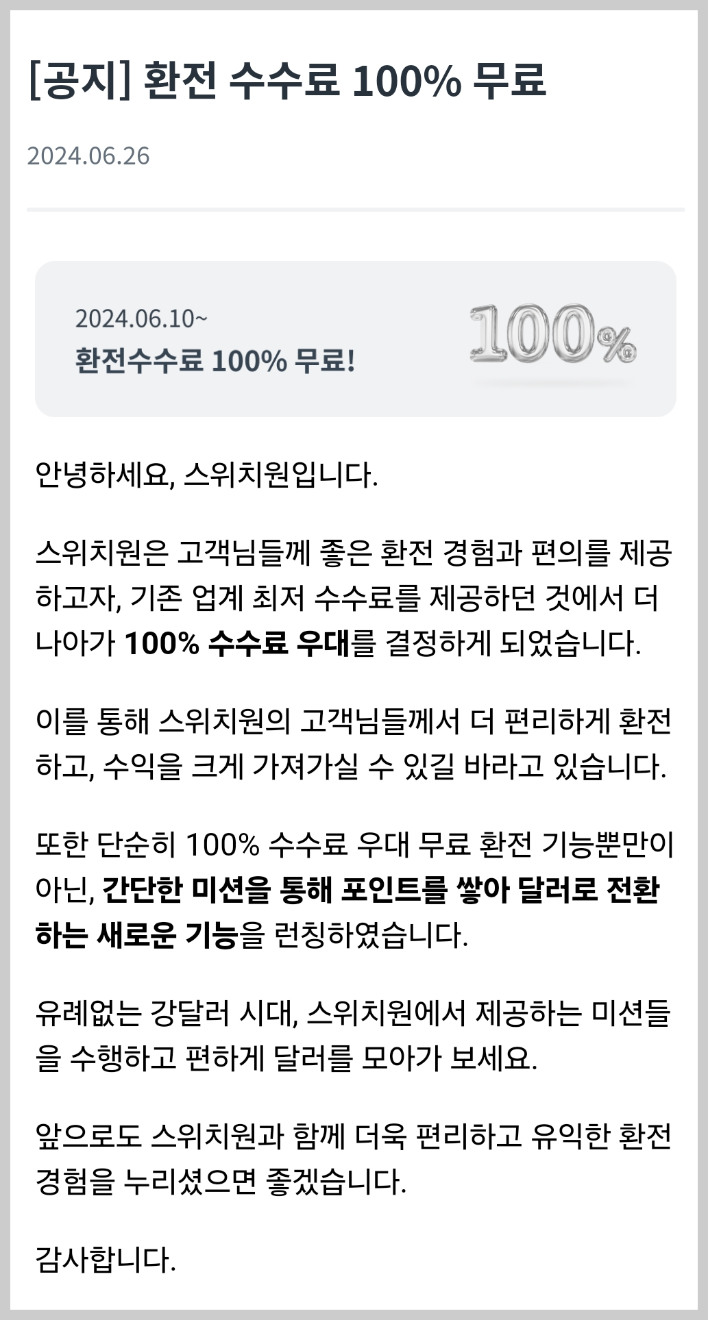 스위치원 - 환율우대 100% 환전 플랫폼 - Google Play 앱