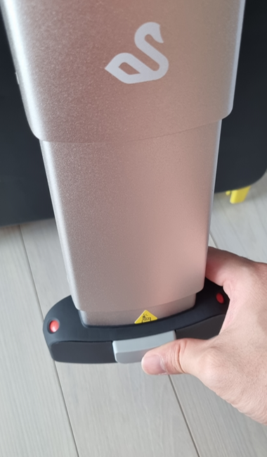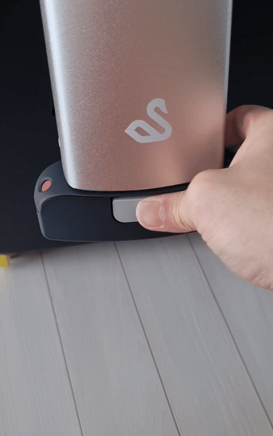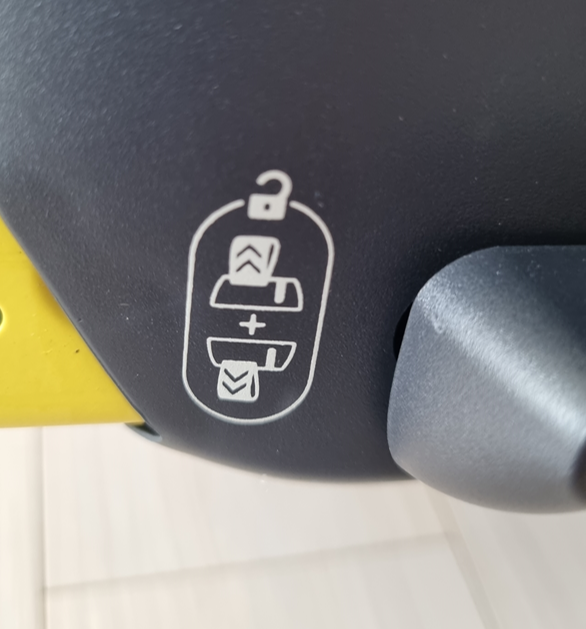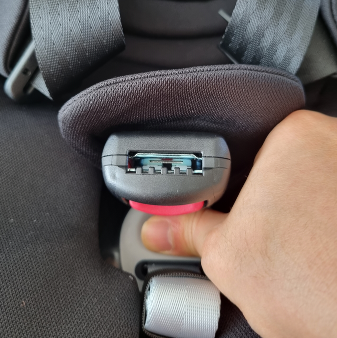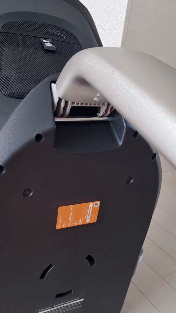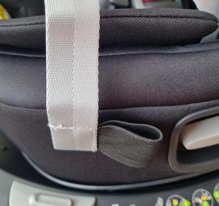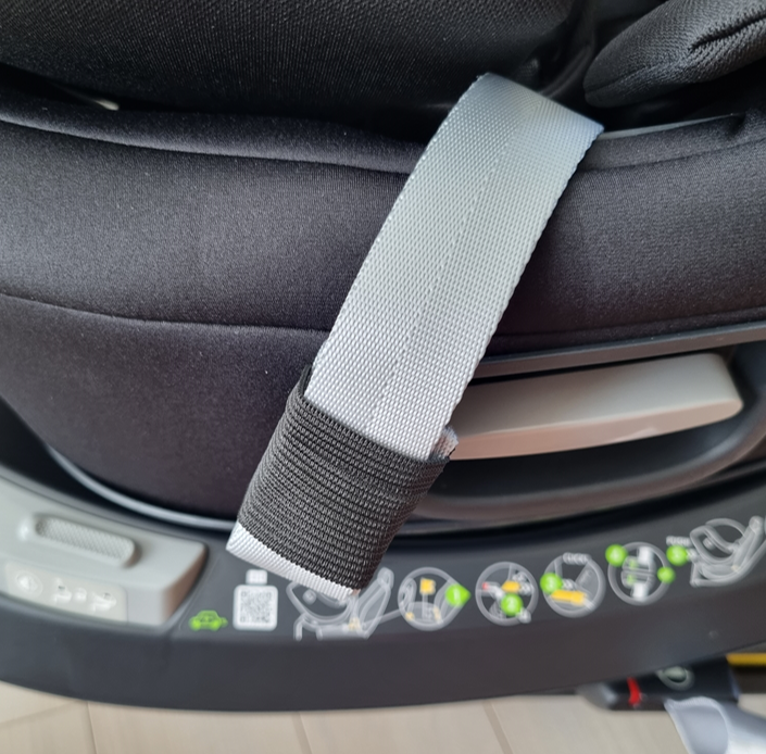 그리고 벨트 바클 아래 당기는 끈 위에 위치한 회색 부분을 꾹 눌러주면 버튼이 눌리는 느낌이 날 거예요그 상태에서 양쪽 벨트를 최대한 당겨서 길게 빼줍니다이거는 내리면서 벨트를 풀어줄 때마다 해놓는 것이 좋아 보여요그래야 다음에도 바로 편하게 앉힐 수 있으니까요