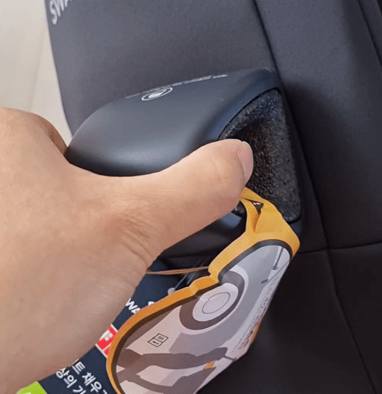-아래 노랑 부속품은 아래 그림 설명과 같이 의자 틈 고리 부분에 끼워놓고 편하게 설치하도록 하는 건데요