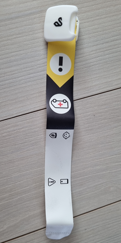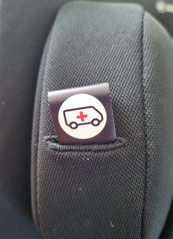 헤드 측면 부분에 다음과 같이 아기의 필수 정보들을 적어놓을 수 있는 태그 띠가 하나 들어가 있어요