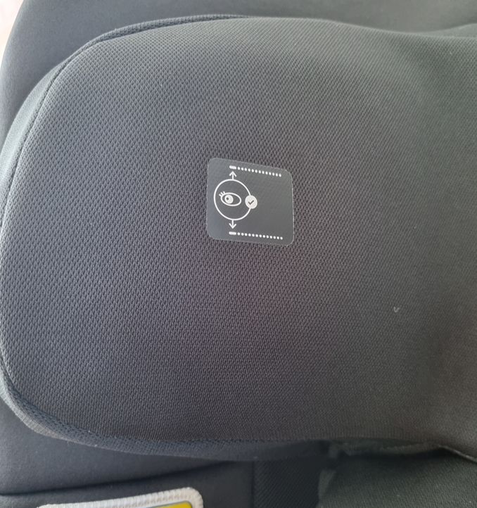 먼저 아기를 의자에 앉히면 아래와 같이 헤드옆에 눈모양 표시가 있습니다