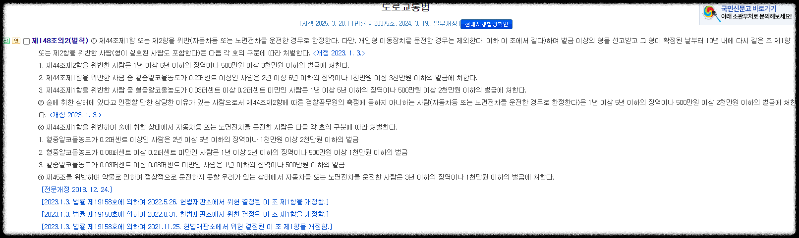 자세한 현행 도로교통법에 대해서 알고 싶다면 국가법렵정보센터에서 확인 가능합니다