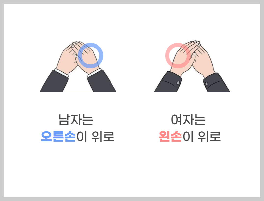 (남자는 오른손이 위로, 여자는 왼손이 위로)