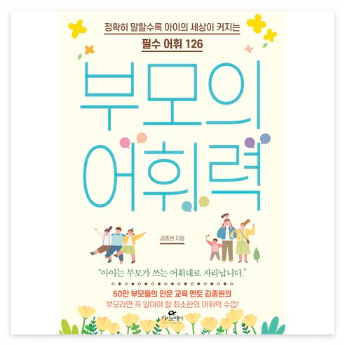 “아이는 부모가 쓰는 어휘대로 자라납니다.”100만 부모들의 인문 교육 멘토 김종원의부모를 위한 최소한의 어휘력 수업!《부모의 어휘력》은 대한민국 100만 학부모가 선택한 인문 교육 전문