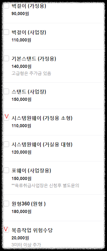 필요한 대로 시스템원웨이(소형), 복층 작업 수당을 선택해 주었습니다