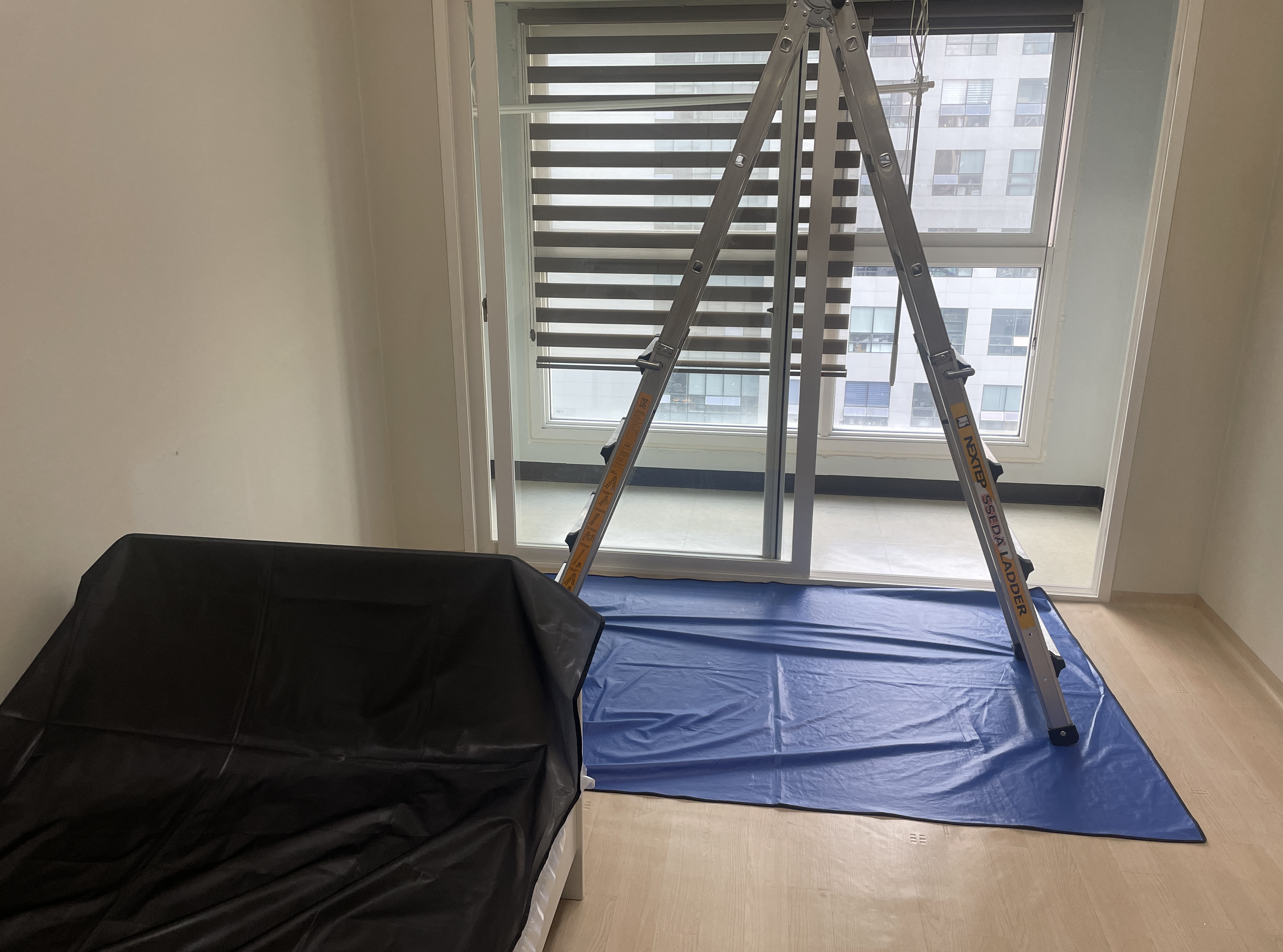 우선 사다리 작업을 할 수 있게 에어컨 아래를 잘 정리해 놓았습니다