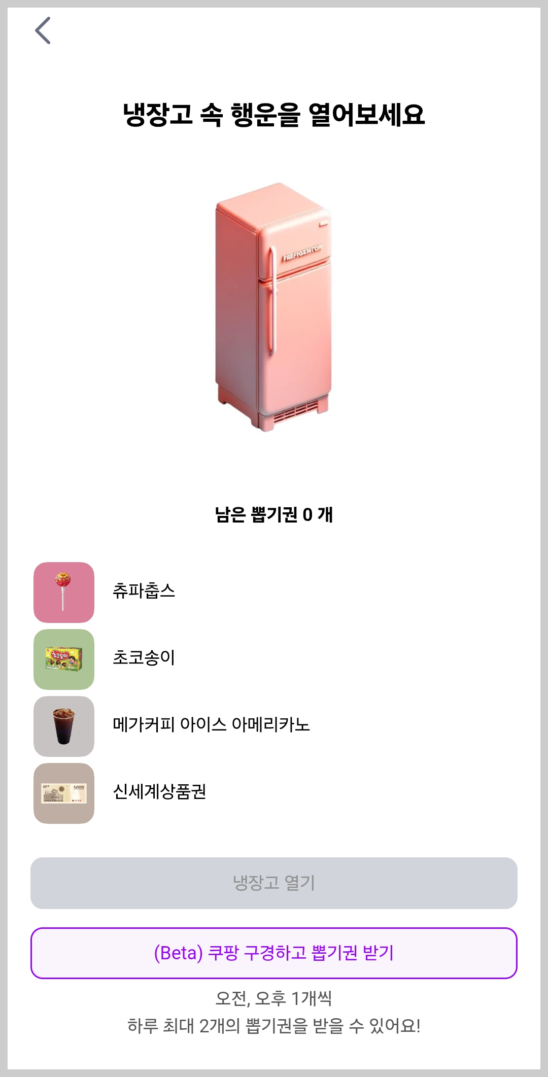오전, 오후 하루 2번 뽑기권을 줍니다