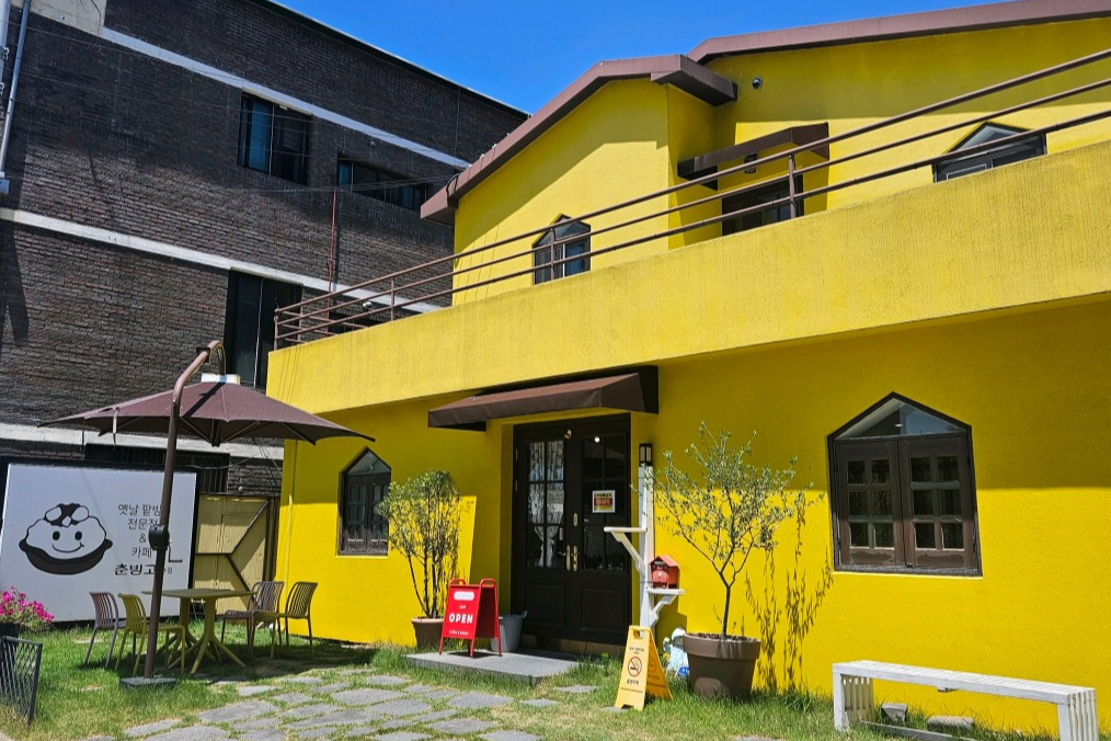 노란색 외관의 아늑한 분위기와 깔끔한 실내, 넉넉한 좌석이 특징