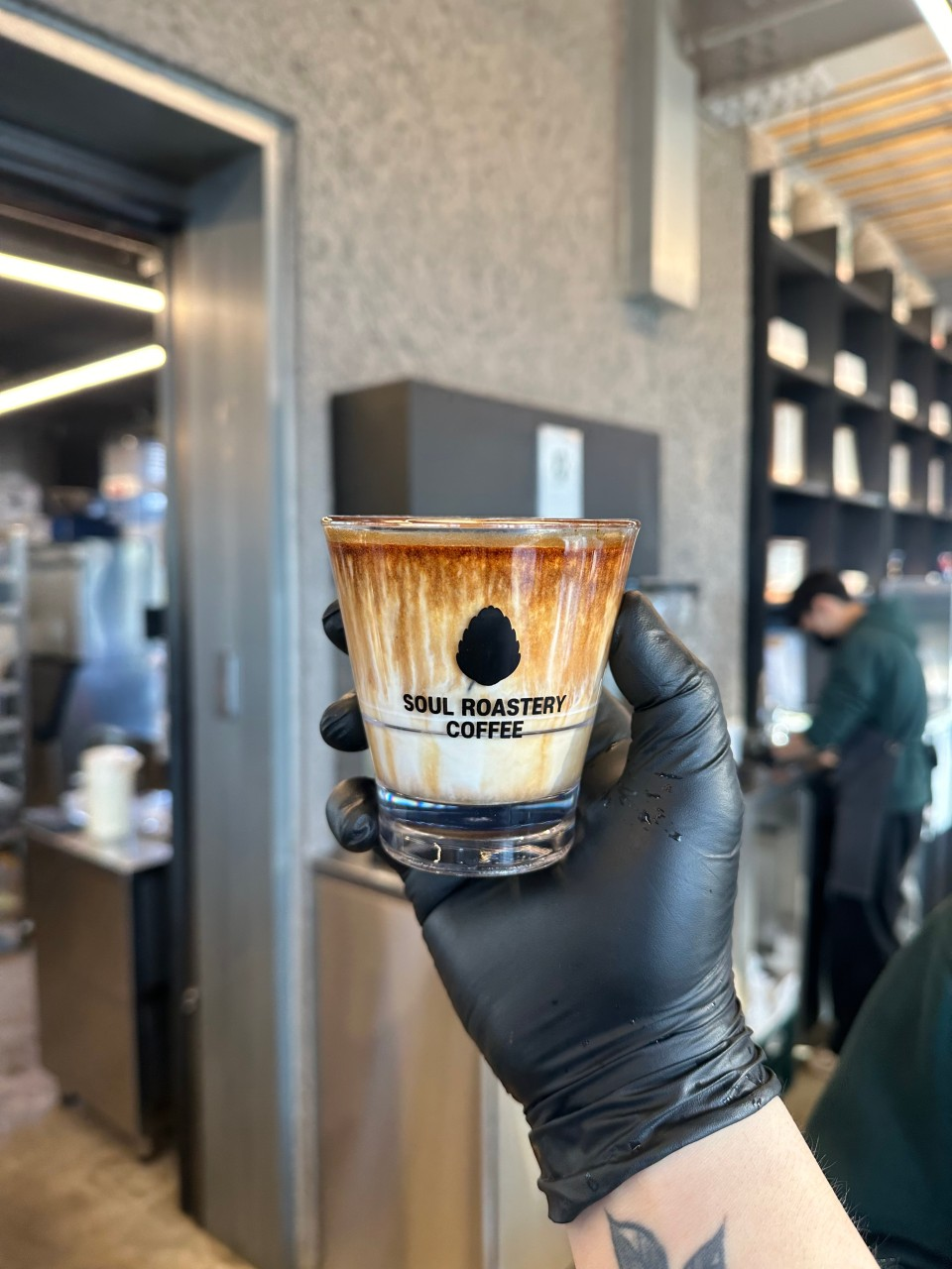 로스터리 카페로, 디저트보다는 커피 메뉴에 집중하며 아인슈페너, 플랫화이트, 라테 등이 인기