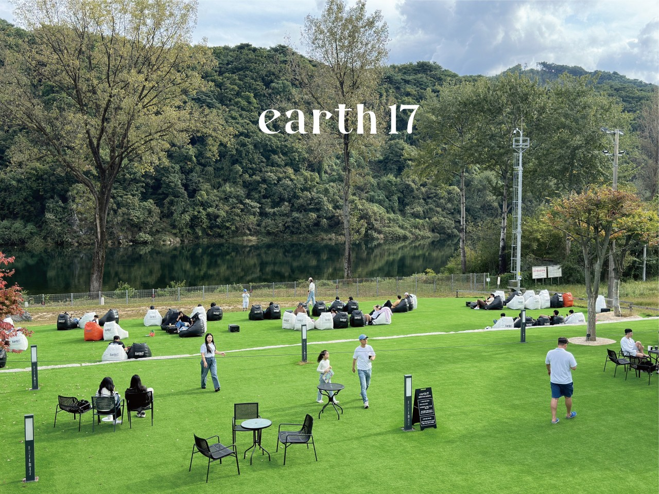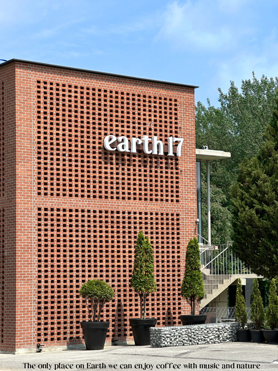 어스 17 (소양강댐 인근에 위치한 붉은 벽돌 외관과 넓은 야외 정원 카페)