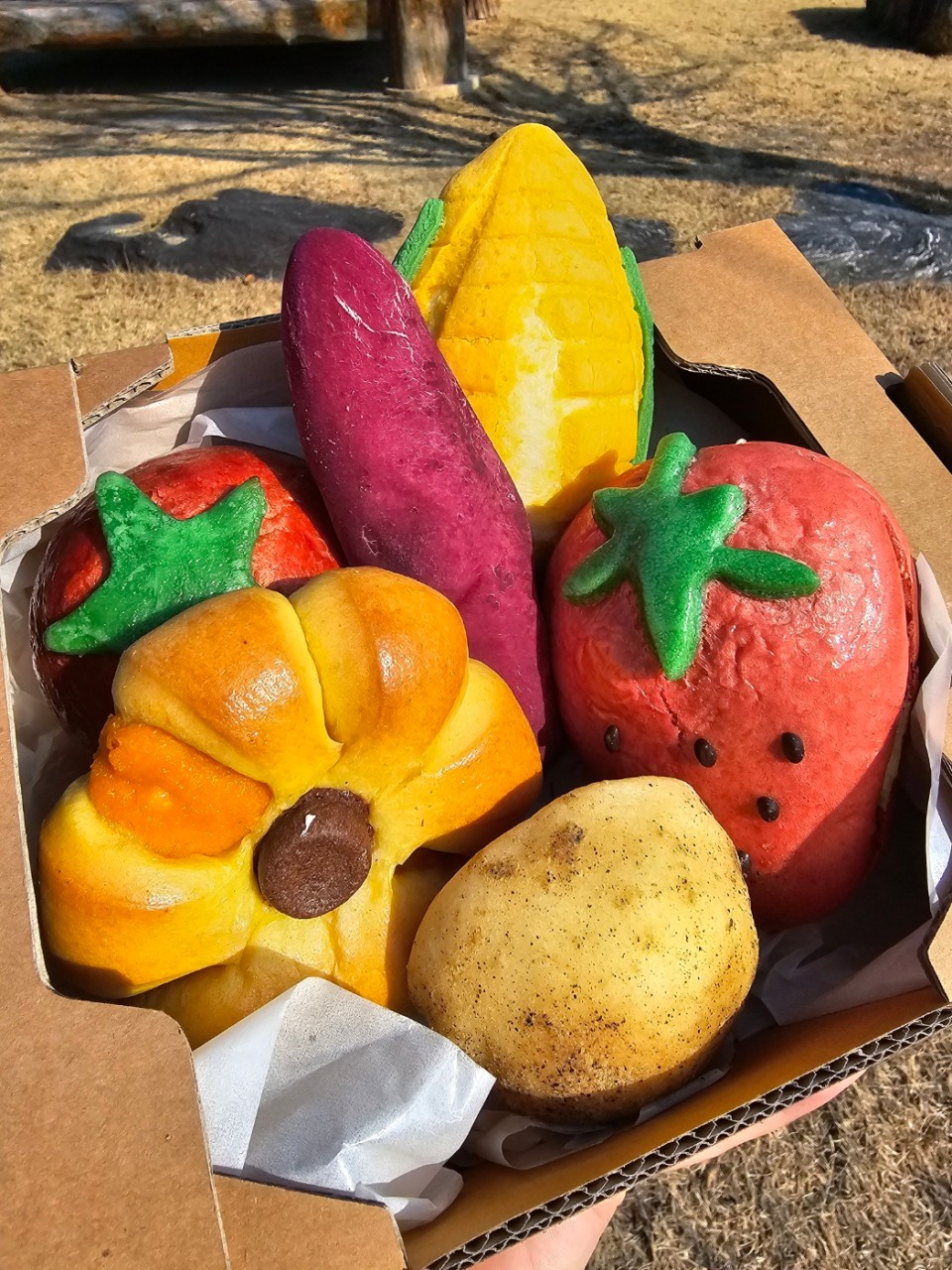 대표 메뉴 농산물 베이커리 (옥수수타르트, 고구마, 감자, 딸기, 토마토, 쪽파스콘 등)