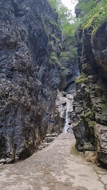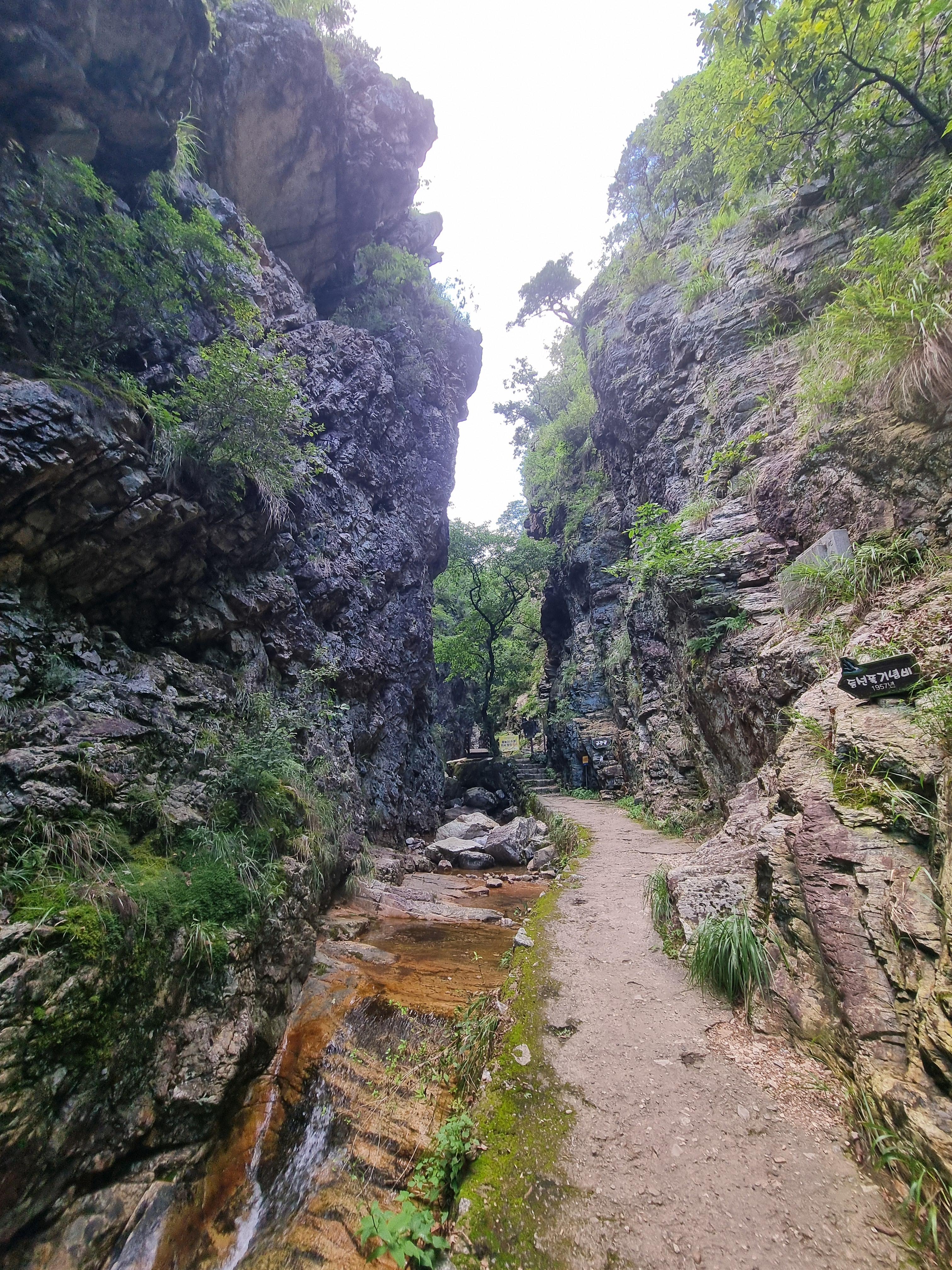 등산폭포입구를 들어선 순간부터 양쪽으로 높은 기암절벽길이 펼쳐집니다~