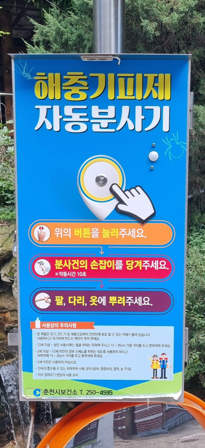 춘천에서 인상적이었던 점은 유명 자연 명소마다 해충기피제를 설치해 두었다는 거였어요