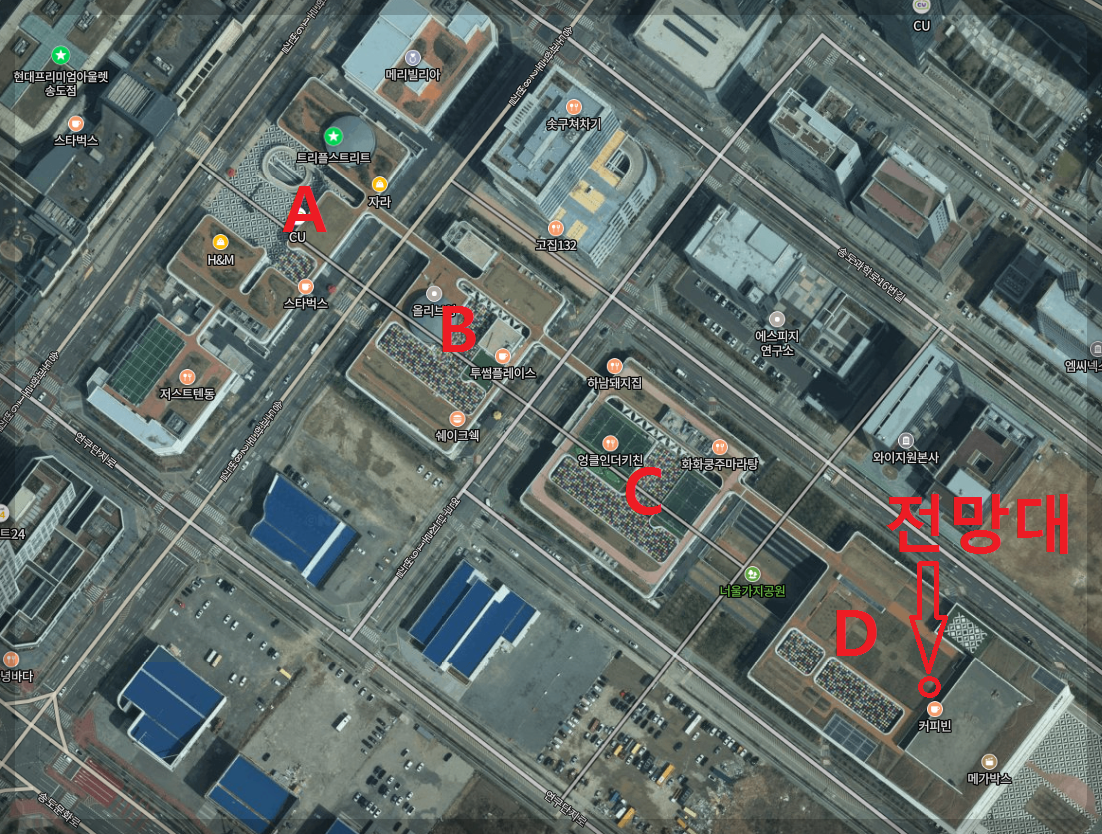 우리는 C동 지하주차장에 주차를 하고 D동 전망대로 향했다.