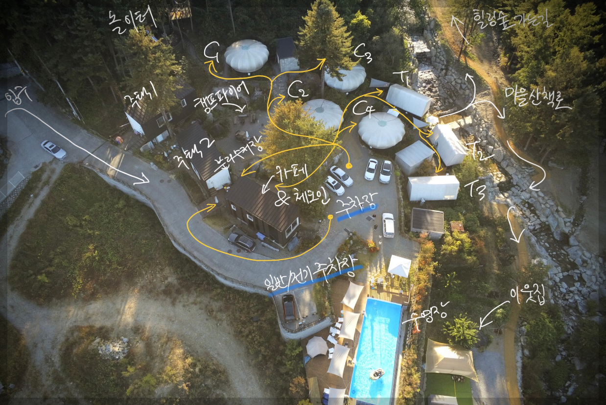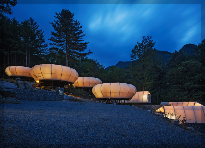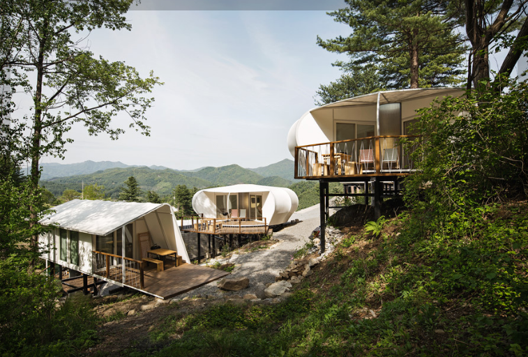 숙소로 정한 곳은 2016년 국제 디자인 어워드 3관왕을 한 건축물의 글램핑장