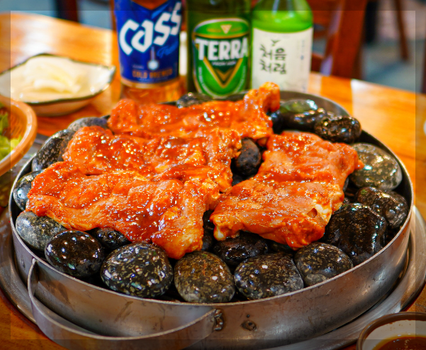 그냥 조약돌 위에서 구워진 닭갈비 맛이겠지? 하면서도 먹어보고 싶은...