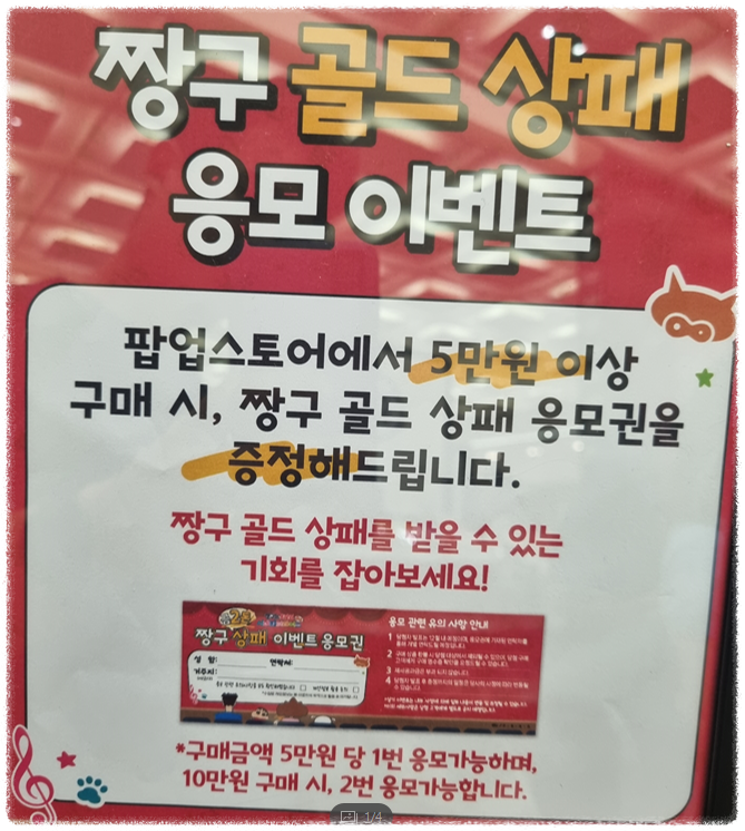 금 2돈짜리 짱구 상패를 받을 수 있는 응모권을 받을 수 있다