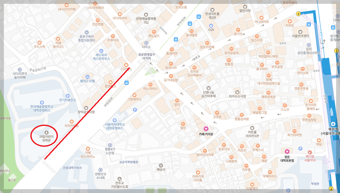 -내비게이션에는'국립 어린이 과학관'이나'창덕궁 소극장'을 찍고 가면 된다